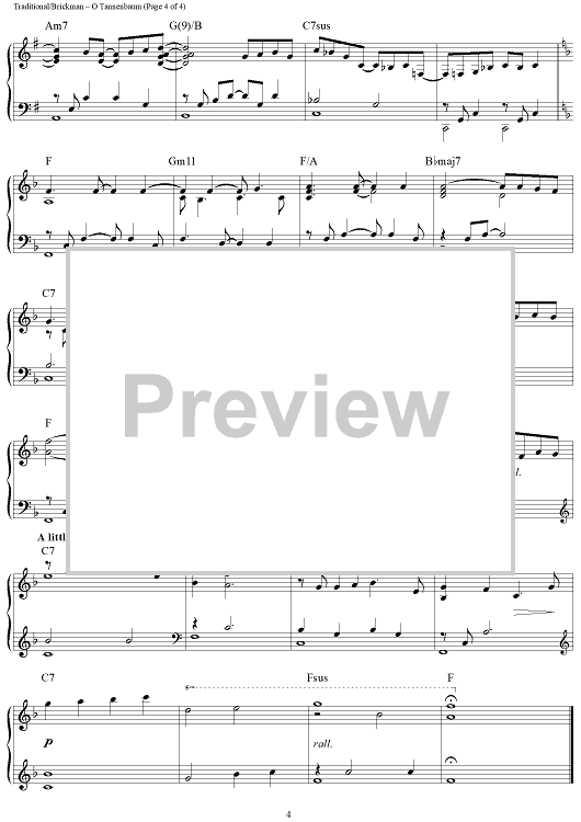 Digital Sheet Music for O Tannenbaum by Jim Brickman, Traditional scored for Piano Solo; id:359335