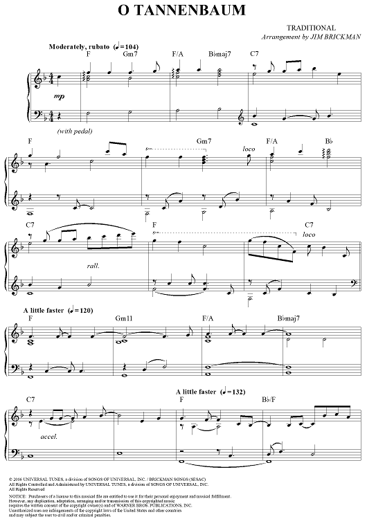 "O Tannenbaum" Sheet Music by Jim Brickman