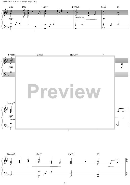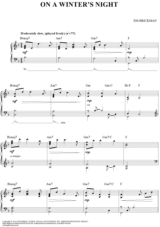 Digital Sheet Music for On a Winter's Night by Jim Brickman scored for Piano Solo; id:442849