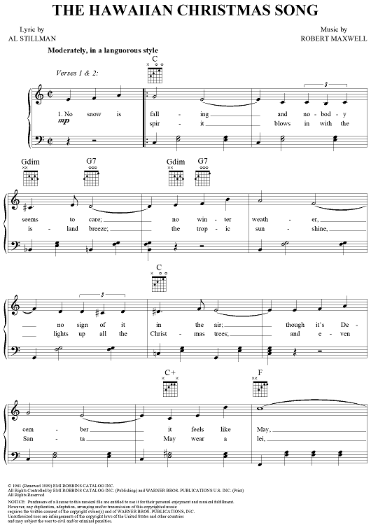 Digital Sheet Music for The Hawaiian Christmas Song by Robert Maxwell, Al Stillman scored for Piano/Vocal/Chords; id:241930