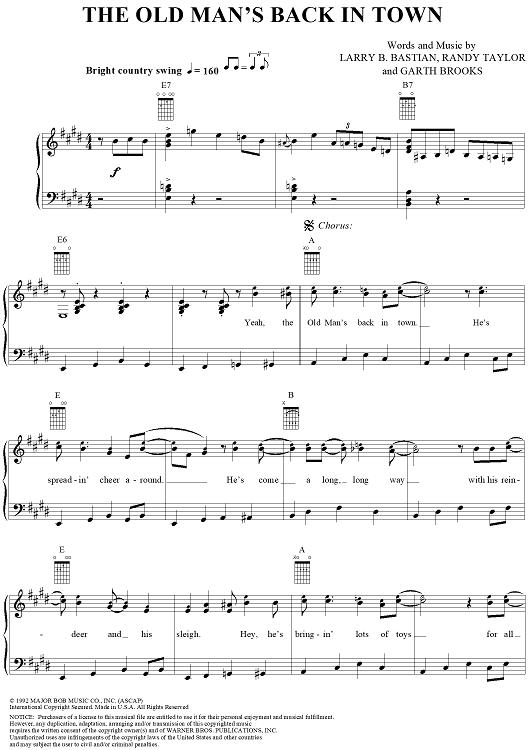 Digital Sheet Music for The Old Man's Back in Town by Garth Brooks, Larry B. Bastian, Randy Taylor scored for Piano/Vocal/Chords; id:276988