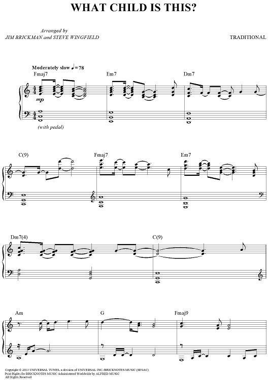 Digital Sheet Music for What Child Is This? by Jim Brickman, Traditional, Steve Wingfield scored for Piano Solo; id:442692