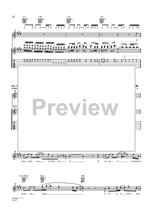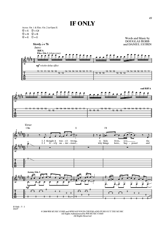 Digital Sheet Music for If Only by Hoobastank, Daniel Estrin, Douglas Robb scored for Guitar Tab/Vocal; id:356850