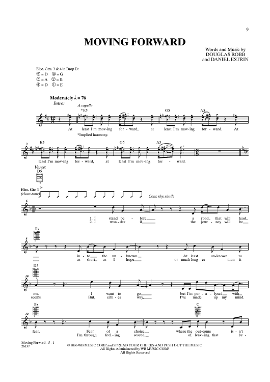 Digital Sheet Music for Moving Forward by Hoobastank, Daniel Estrin, Douglas Robb scored for Guitar Tab/Vocal; id:356841