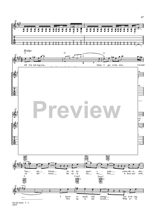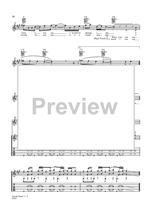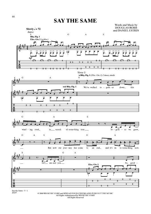 Digital Sheet Music for Say the Same by Hoobastank, Daniel Estrin, Douglas Robb scored for Guitar Tab/Vocal; id:356849