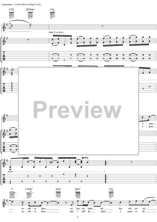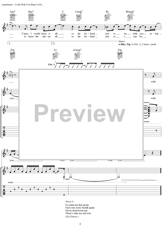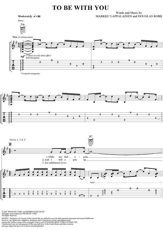 Digital Sheet Music for To Be With You by Hoobastank, Markku Lappalainen, Douglas Robb scored for Guitar Tab/Vocal; id:290097