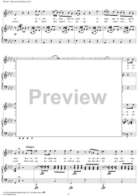 "Dans un bois (Ariette) K295b (K308)" Sheet Music by Wolfgang Amadeus Mozart