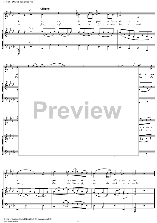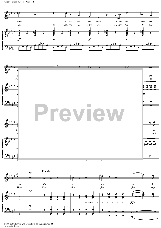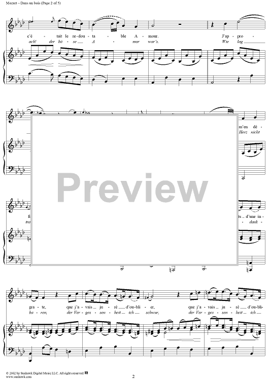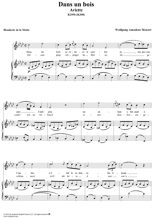 Digital Sheet Music for Dans un bois (Ariette) K295b (K308) by Wolfgang Amadeus Mozart, Houdart de la Motte scored for Voice/Piano; id:291282