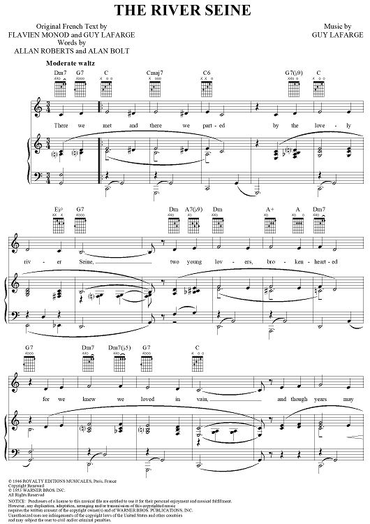 Digital Sheet Music for The River Seine by Guy Lafarge, Allan Roberts, Alan Bolt, Hugo Winterhalter scored for Piano/Vocal/Chords; id:286090