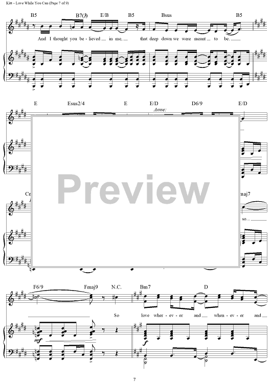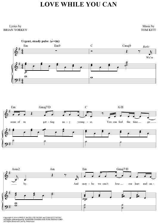 Digital Sheet Music for Love While You Can by Tom Kitt, Brian Yorkey scored for Piano/Vocal/Chords; id:444856