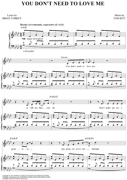 Digital Sheet Music for You Dont Need To Love Me by Tom Kitt, Brian Yorkey scored for Piano/Vocal/Chords; id:444860