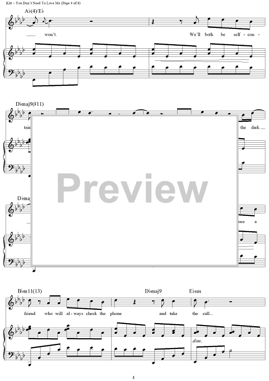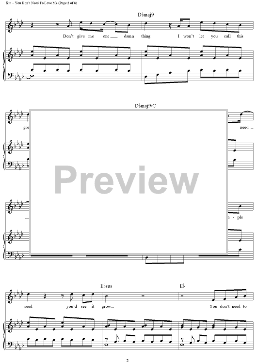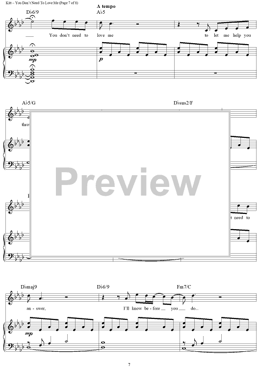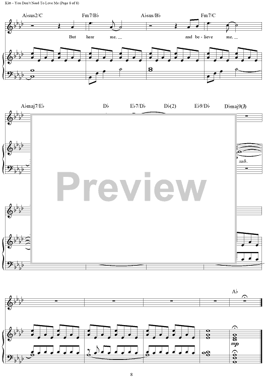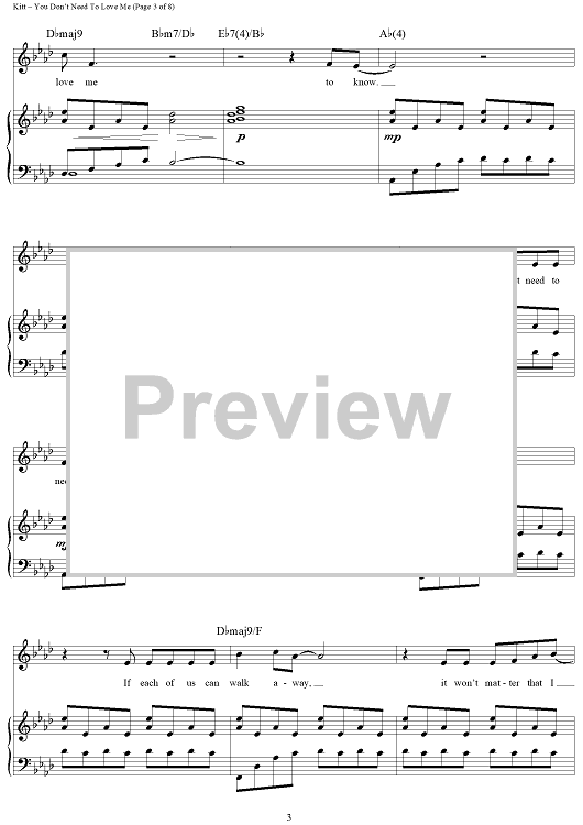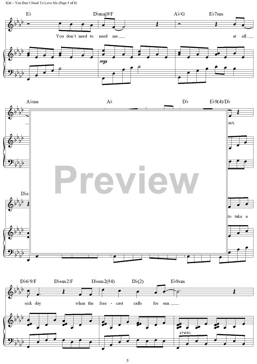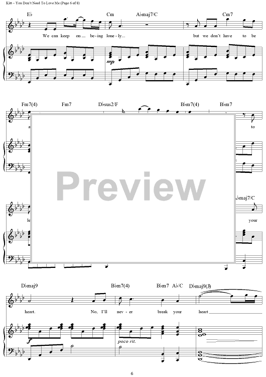 "You Dont Need To Love Me" Sheet Music by Tom Kitt