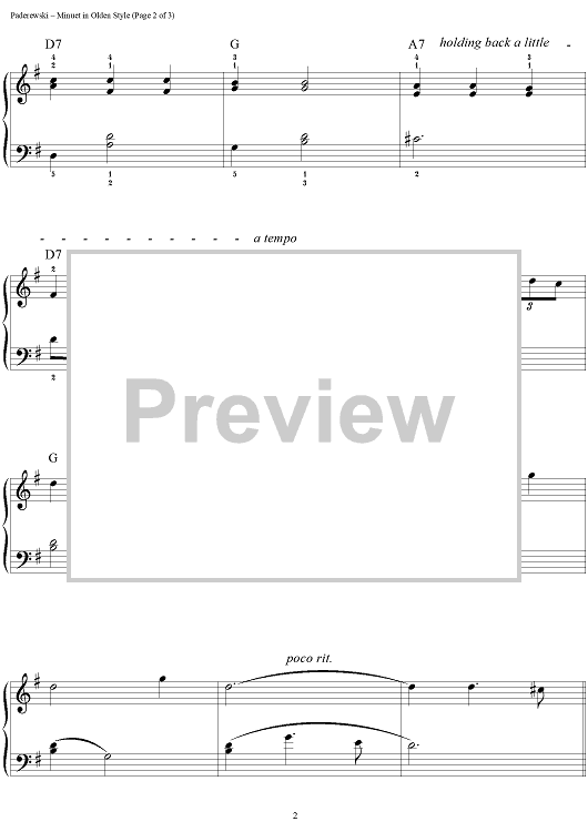 Digital Sheet Music for Minuet in Olden Style by Ronald Herder, Ignace Jan Paderewski scored for Easy Piano; id:284883
