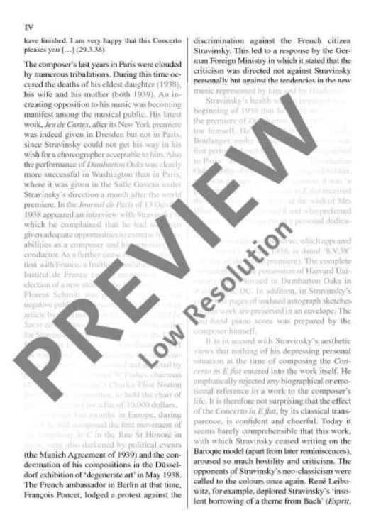 "Concerto in E flat "Dumbarton Oaks" - Full Score" Sheet Music by Igor Stravinsky
