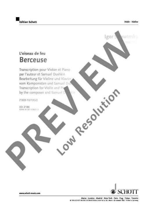 Digital Sheet Music for L'Oiseau de feu - The Firebird by Igor Stravinsky scored for Violin And Piano; id:472601