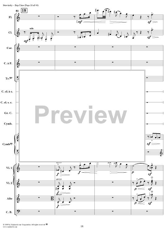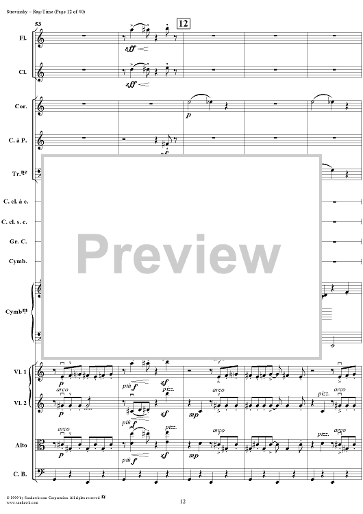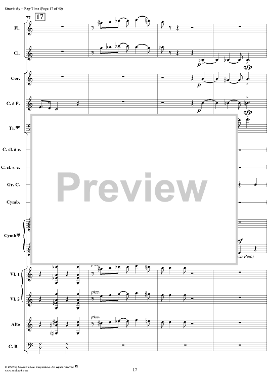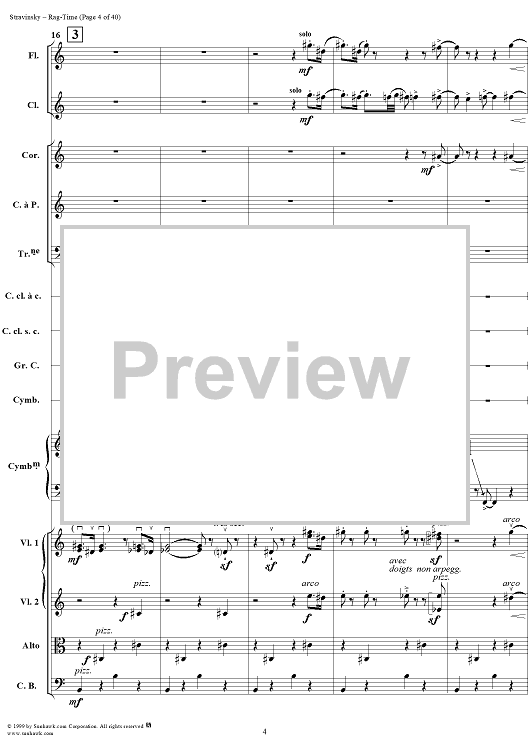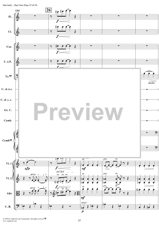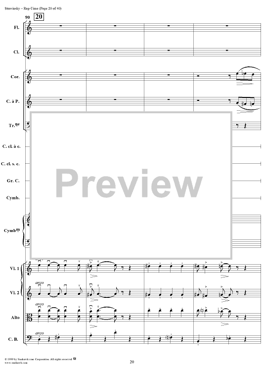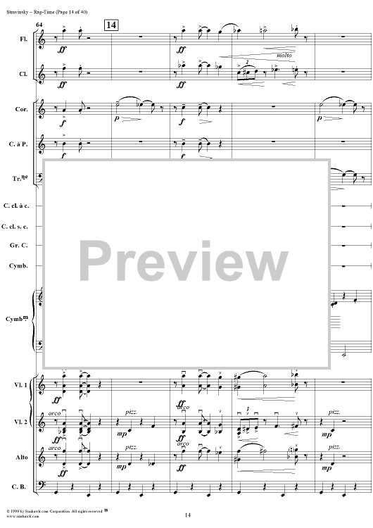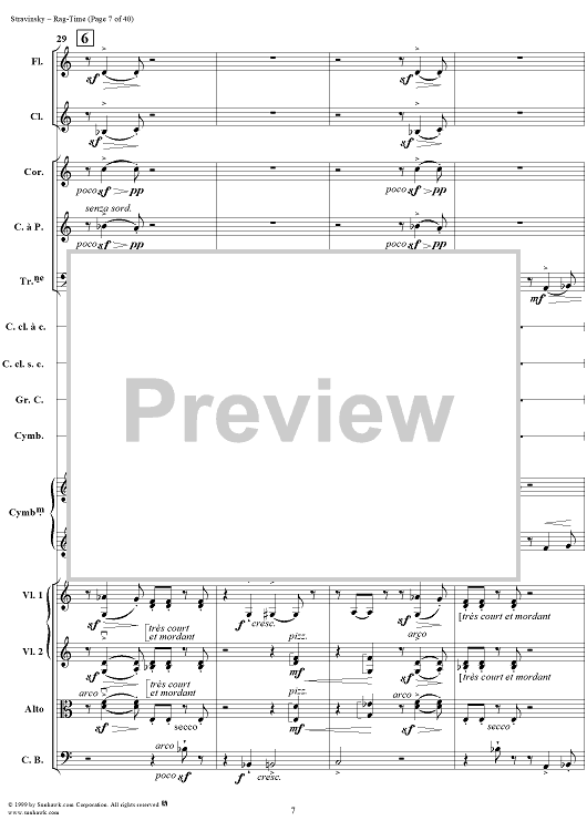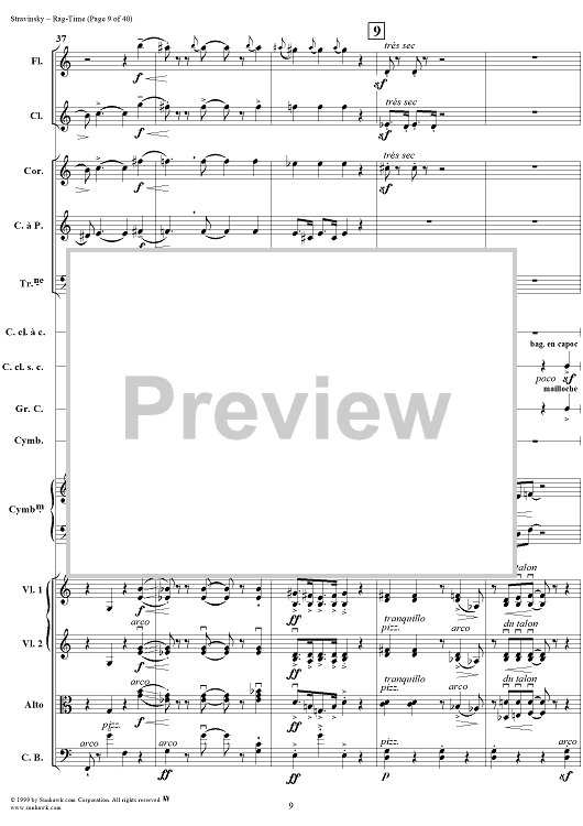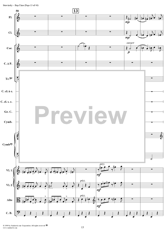 Digital Sheet Music for Rag -Time by Igor Stravinsky scored for Chamber Orchestra; id:265715
