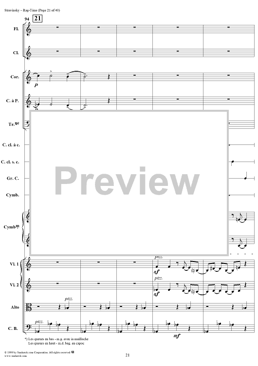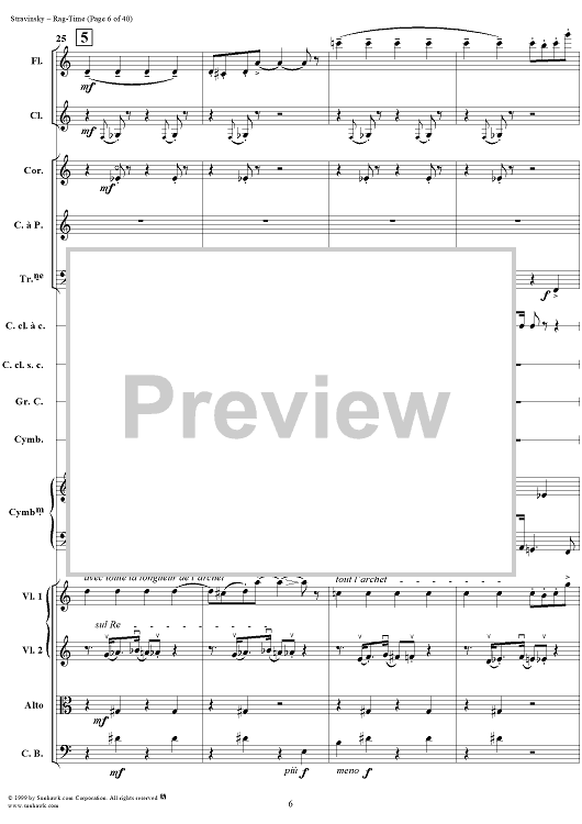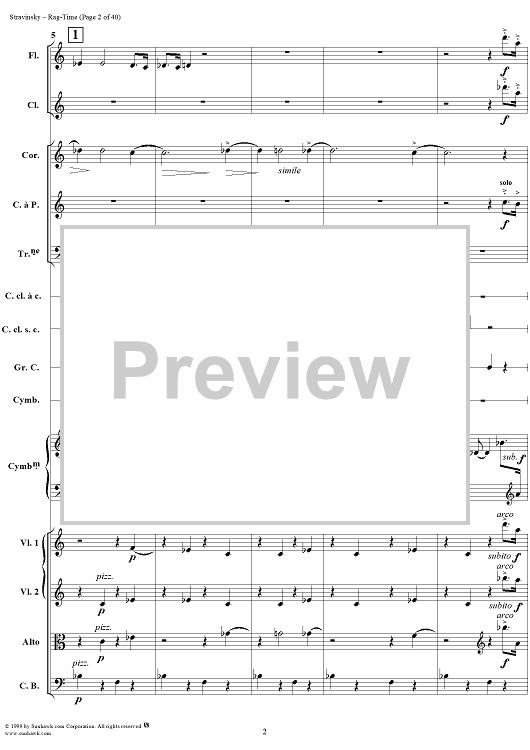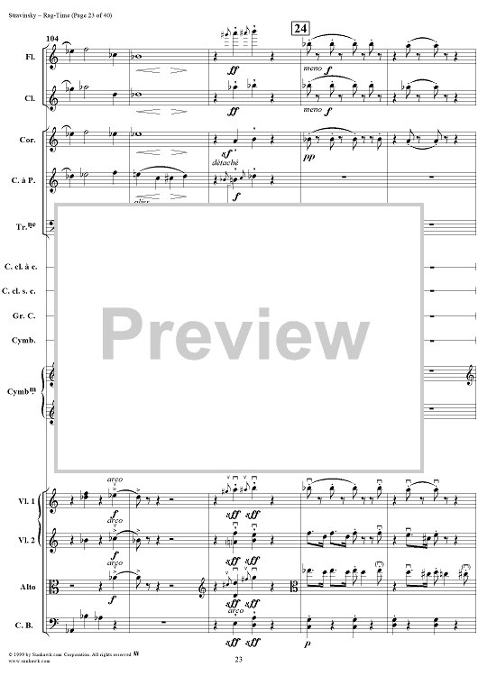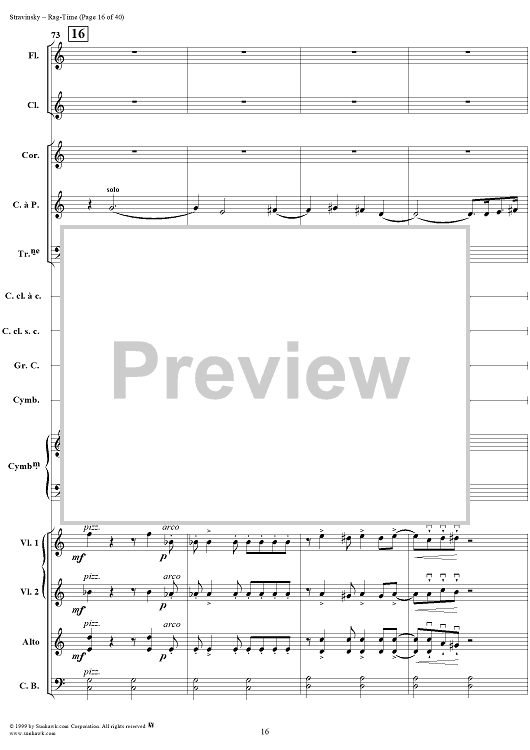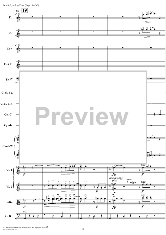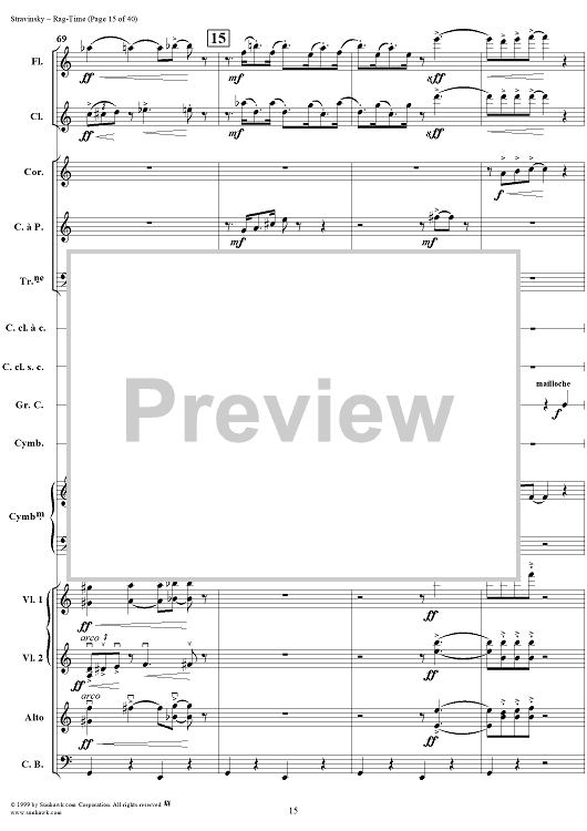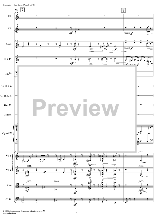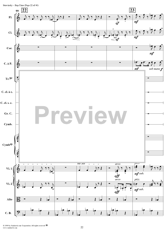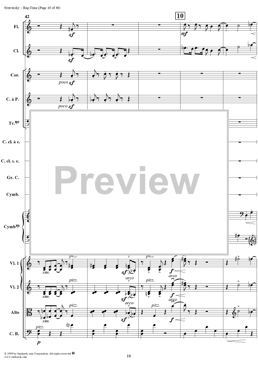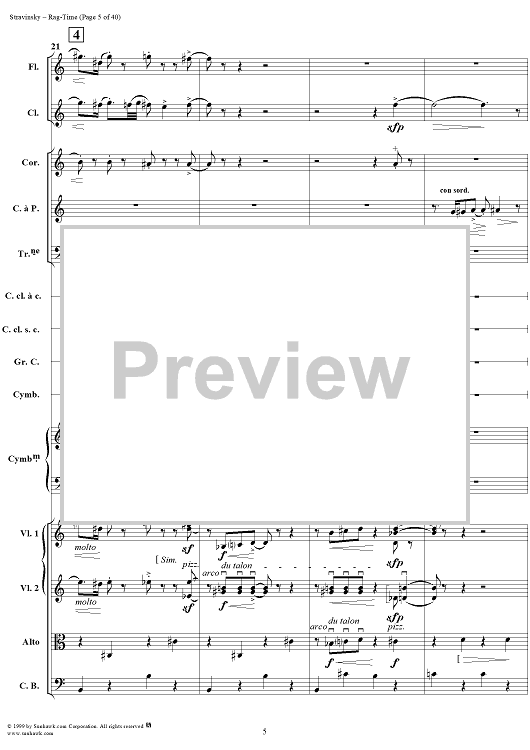 Digital Sheet Music for Rag -Time by Igor Stravinsky scored for Chamber Orchestra; id:265715