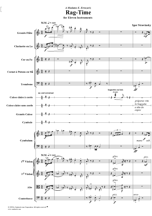 "Rag -Time" Sheet Music by Igor Stravinsky