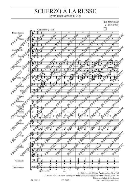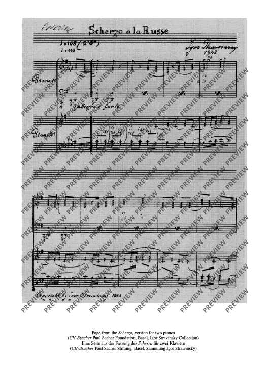 "Scherzo a la russe - Full Score" Sheet Music by Igor Stravinsky