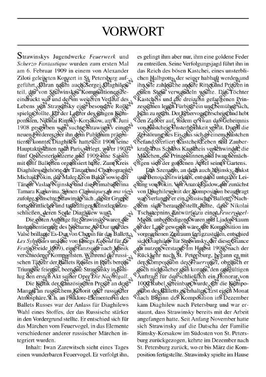 Igor Stravinsky's musical setting of the Slavic fable The Firebird is one of the most ground-breaking orchestral works of the early 20th century. The reviews of the world premiere of the ballet at the Théâtre National de l’Opéra in Paris lauded Stravinsky's 'dazzling music in all shades of colour'; as a consequence, he composed two orchestral suites of his ballet. The version of 1919 is now published as a new edition with a modern notation and new orchestral material.