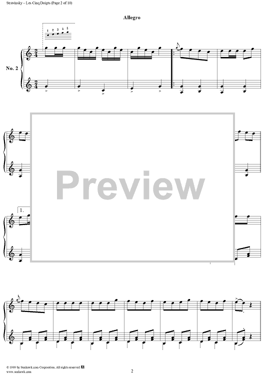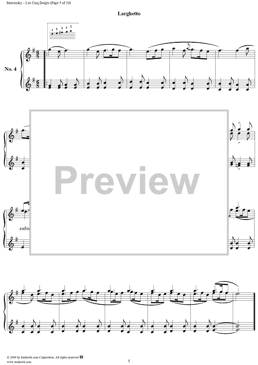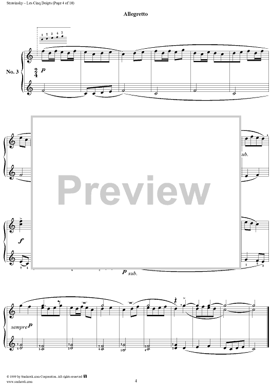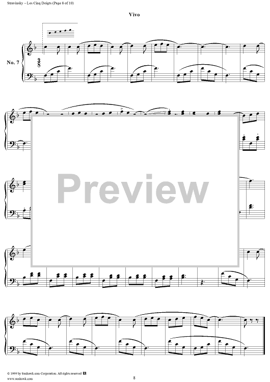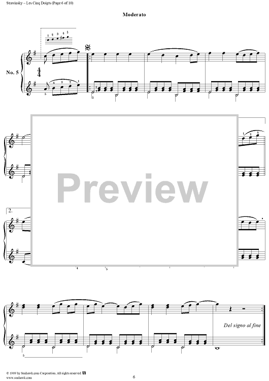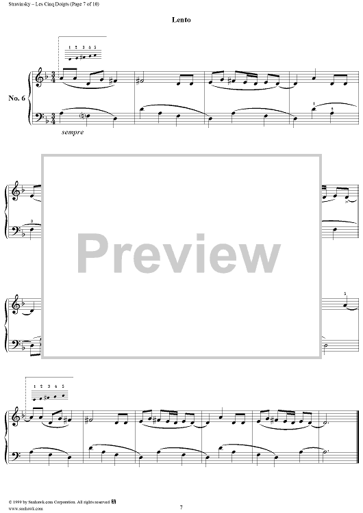 Digital Sheet Music for The Five Fingers - 8 easy pieces by Igor Stravinsky scored for Piano Solo; id:265692