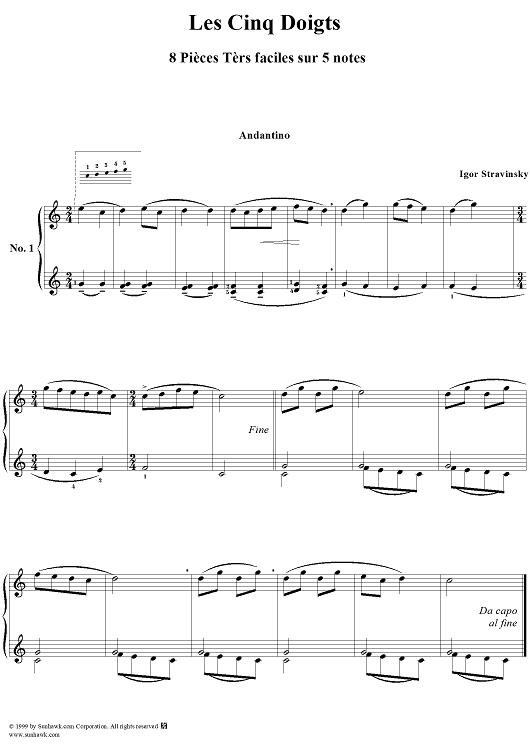 "The Five Fingers - 8 easy pieces" Sheet Music by Igor Stravinsky