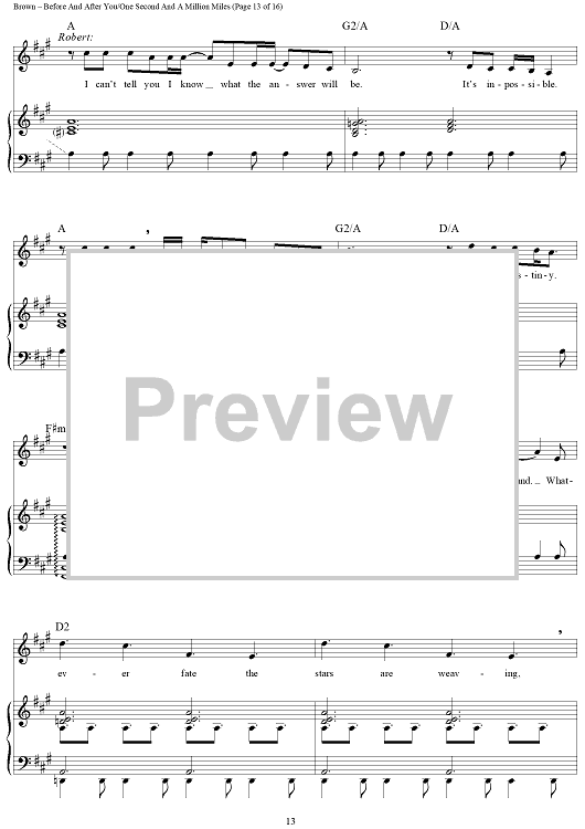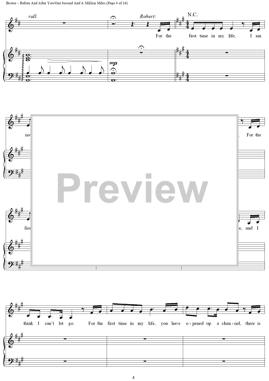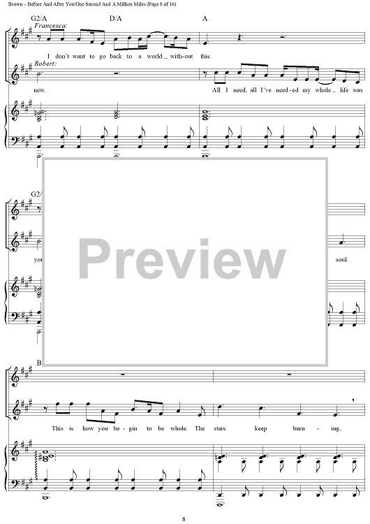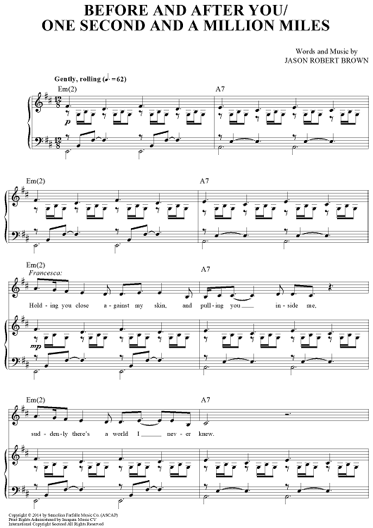 Digital Sheet Music for Before and After You/One Second and a Million Miles by Jason Robert Brown scored for Piano/Vocal/Chords; id:445593