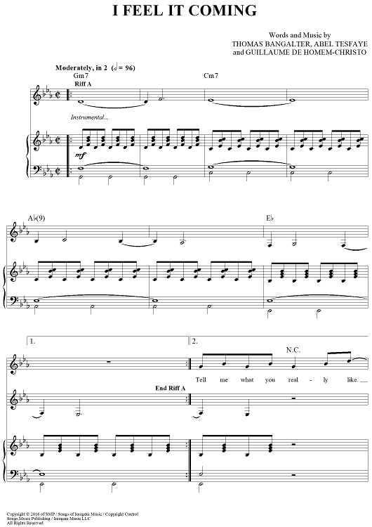 "I Feel It Coming" Sheet Music by The Weeknd