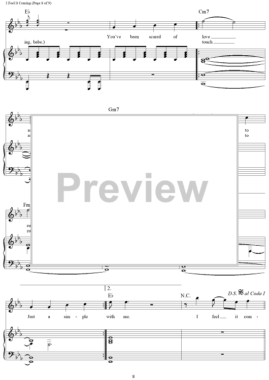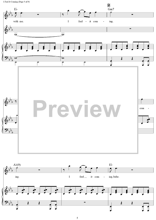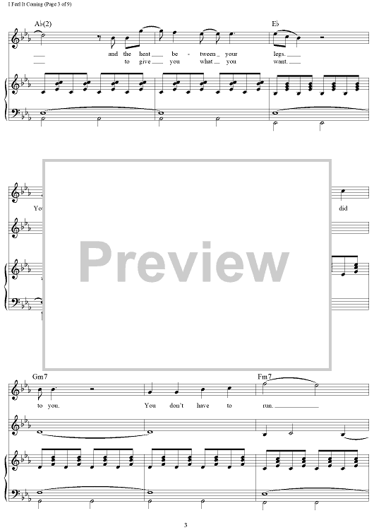 Digital Sheet Music for I Feel It Coming by Thomas Bangalter, Guy-Manuel de Homem-Christo, Abel Tesfaye, The Weeknd scored for Piano/Vocal/Chords; id:463614