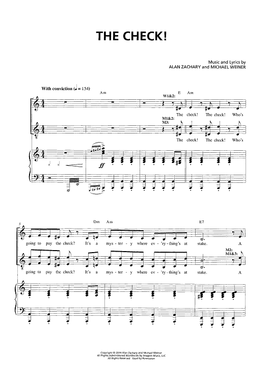 Digital Sheet Music for The Check! by Michael Weiner, Alan Zachary scored for Piano/Vocal/Chords; id:458341