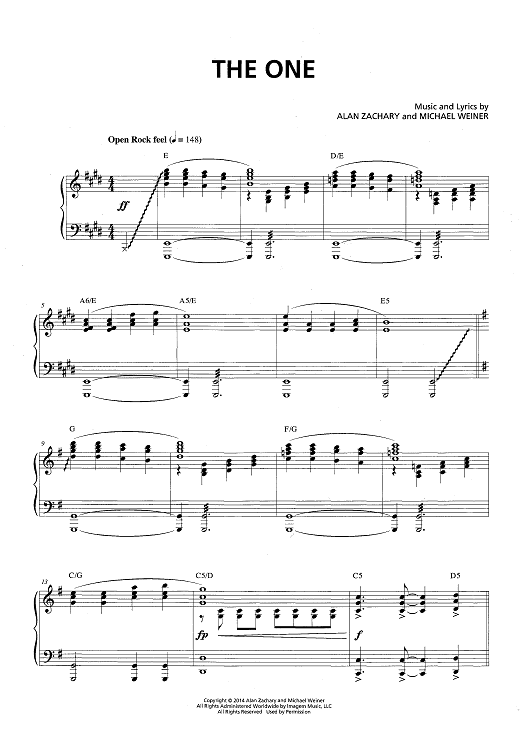 Digital Sheet Music for The One by Michael Weiner, Alan Zachary scored for Piano/Vocal/Chords; id:458245
