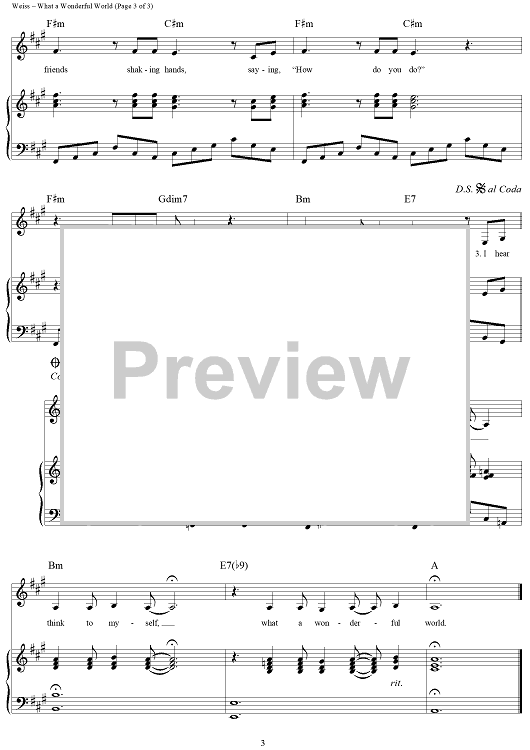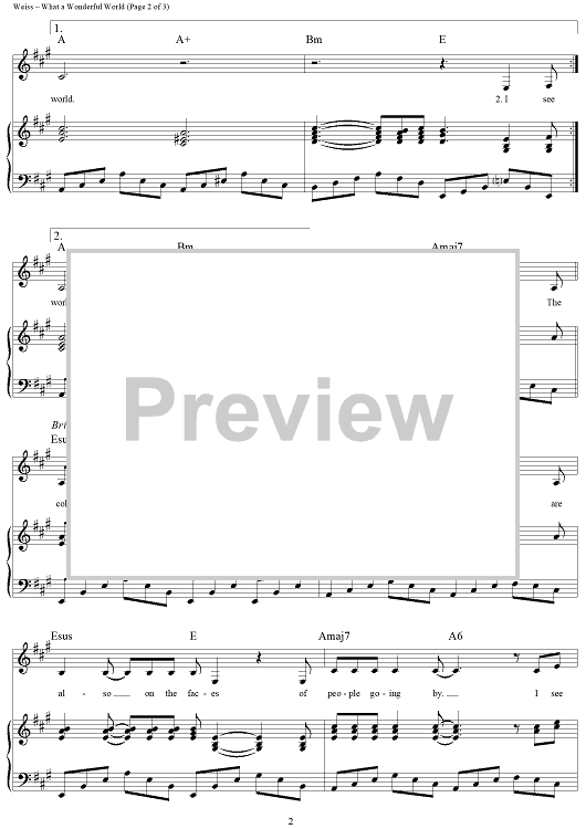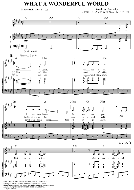 Digital Sheet Music for What a Wonderful World by Bob Thiele, George David Weiss, Anne Murray scored for Piano/Vocal/Chords; id:289011
