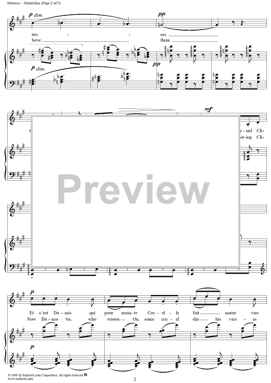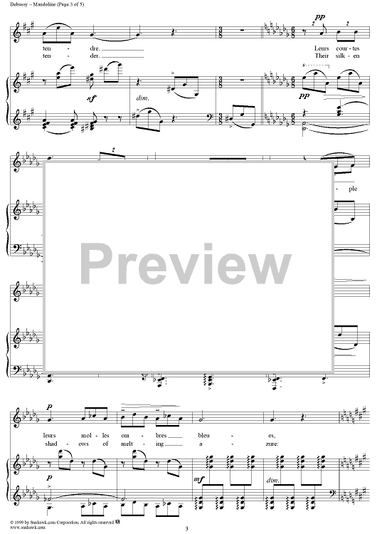 Digital Sheet Music for Mandoline by Paul Verlaine, Claude Debussy scored for Voice/Piano; id:118000