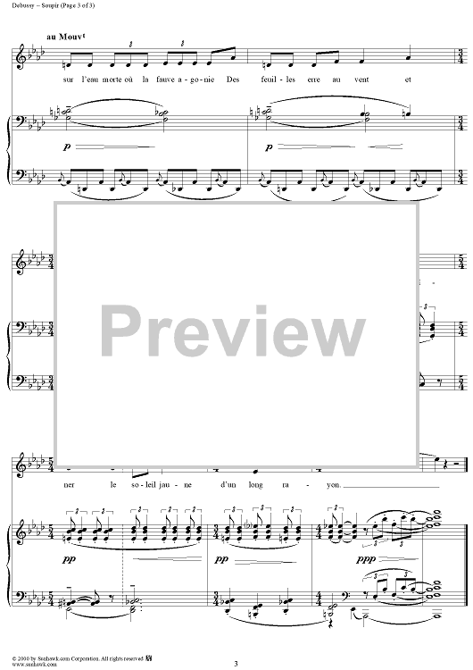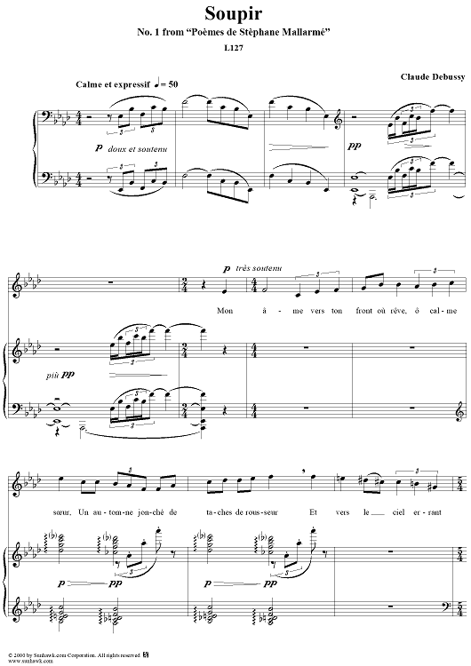 Digital Sheet Music for No. 1: Soupir by Claude Debussy, Stèphane Mallarmé scored for Voice/Piano; id:240970