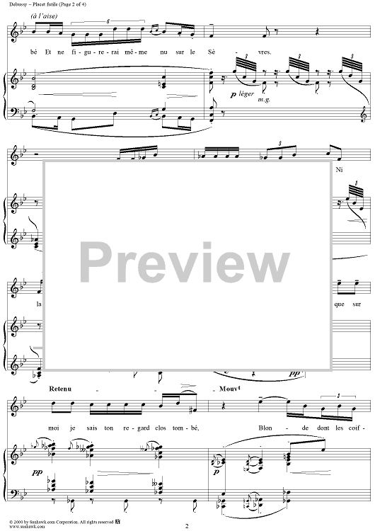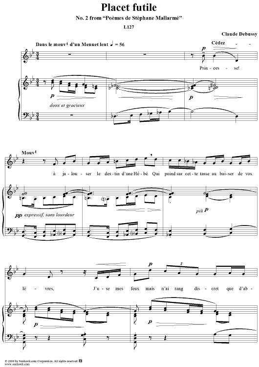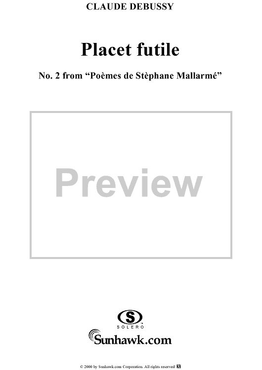 Digital Sheet Music for No. 2: Placet futile by Claude Debussy, Stèphane Mallarmé scored for Voice/Piano; id:240971