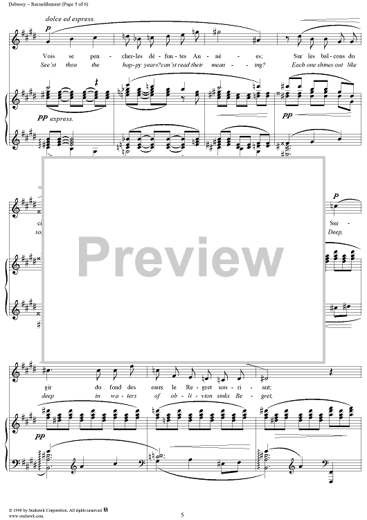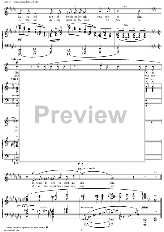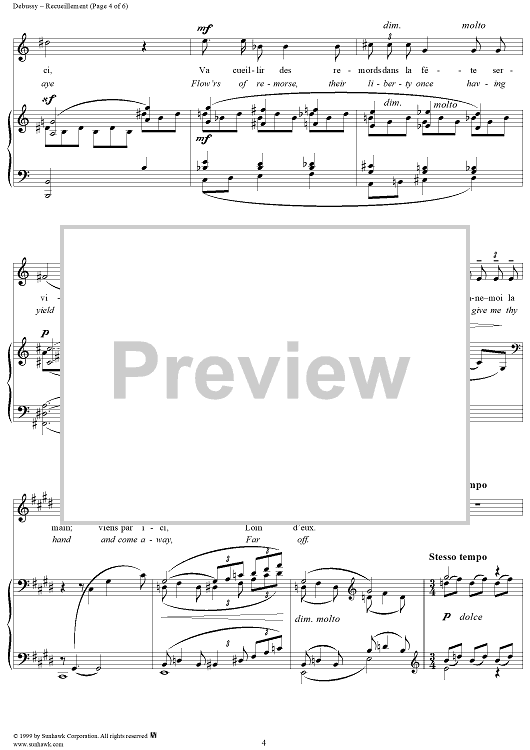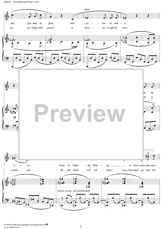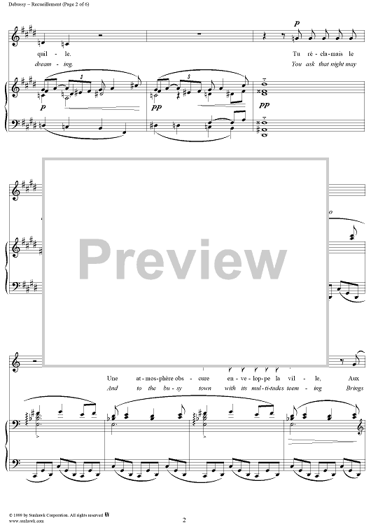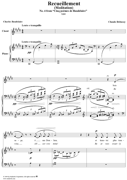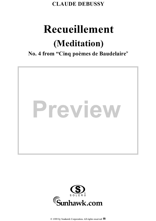 Digital Sheet Music for No. 4: Recueillement by Charles Baudelaire, Claude Debussy scored for Voice/Piano; id:117998