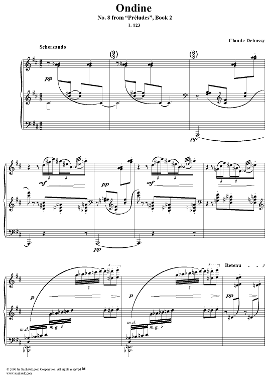 Digital Sheet Music for No. 8: Ondine by Claude Debussy scored for Piano Solo; id:154828