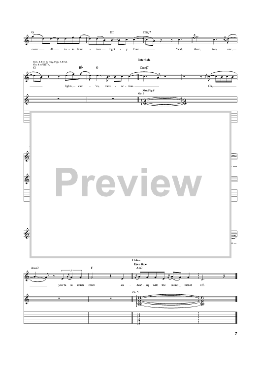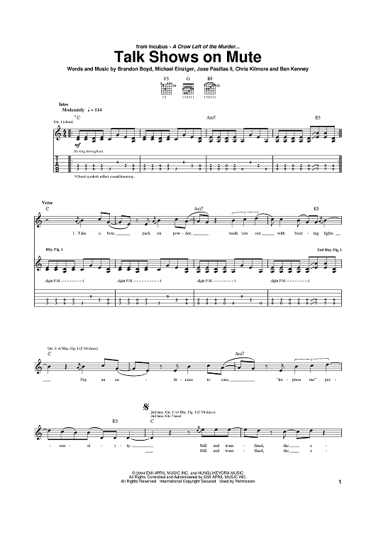 Digital Sheet Music for Talk Shows On Mute by Brandon Boyd, Mike Einziger, Incubus, José Antonio Pasillas II scored for Guitar Tab; id:374107