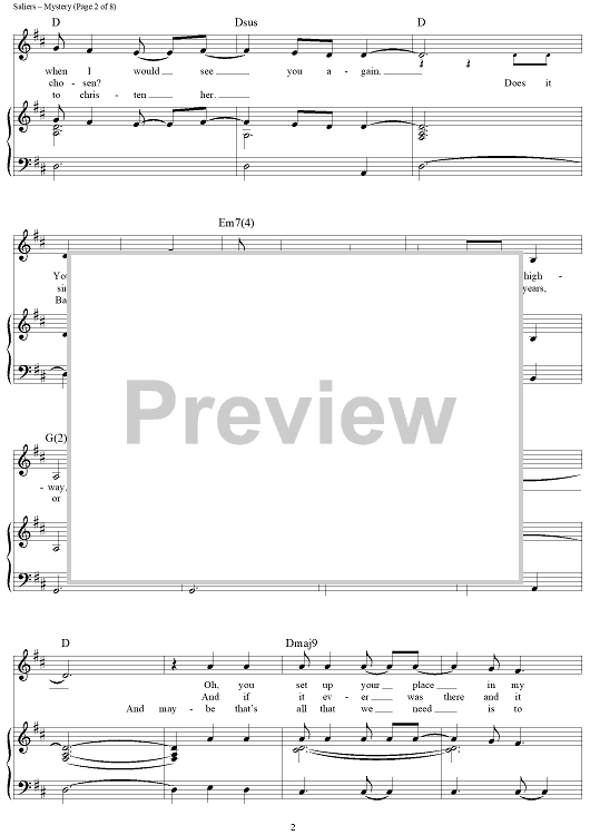 Digital Sheet Music for Mystery by Indigo Girls, Emily Saliers scored for Piano/Vocal/Chords; id:411468