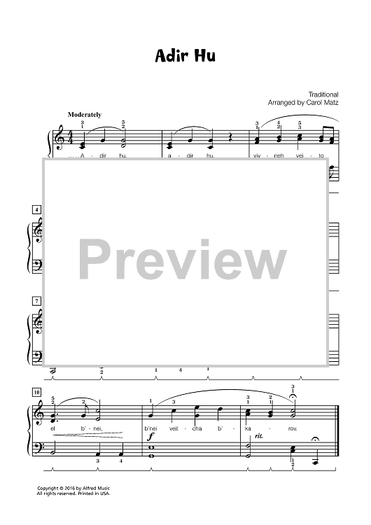 Digital Sheet Music for Adir Hu by Carol Matz, Traditional scored for Piano; id:461308