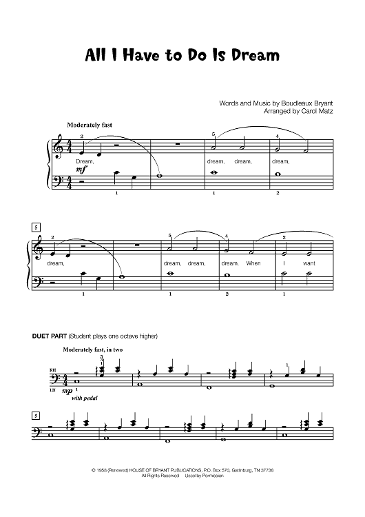 Digital Sheet Music for All I Have to Do Is Dream by Boudleaux Bryant, Carol Matz scored for Piano; id:451469