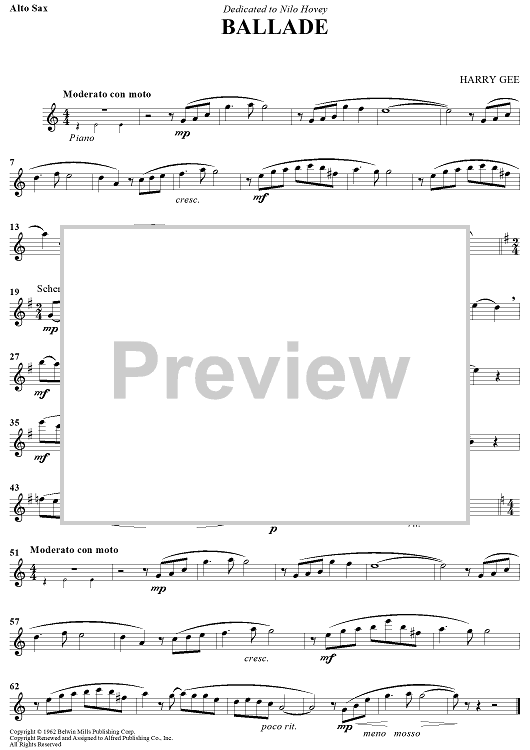 Digital Sheet Music for Ballade by Harry R. Gee scored for Eb Alto Sax/Piano; id:437956