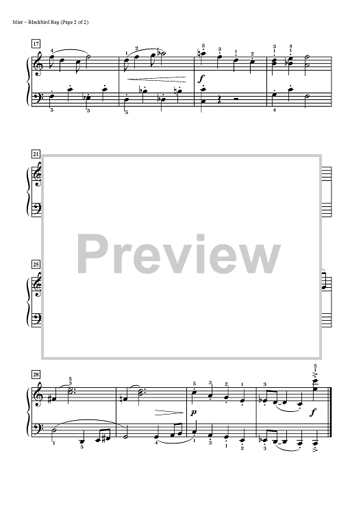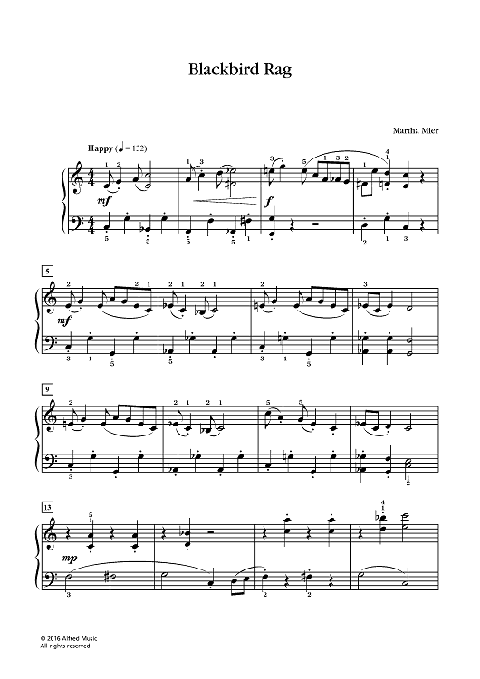 Digital Sheet Music for Blackbird Rag by Martha Mier scored for Piano; id:462782