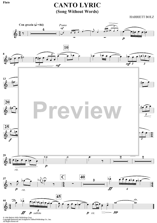 Digital Sheet Music for Canto Lyric (Song Without Words) by Harriett Bolz scored for C Flute/Piano; id:438020