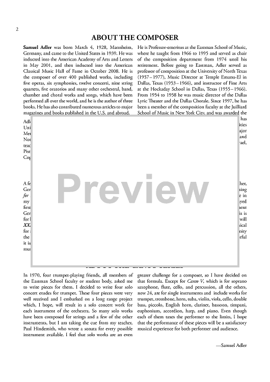 "Canto XXII - for Solo Euphonium" Sheet Music by Samuel Adler