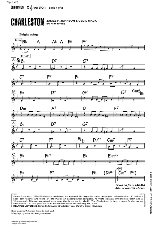 Digital Sheet Music for Charleston - C Instruments by Cecil Mack, James P. Johnson, Keith Nichols scored for Lead Sheet; id:355444