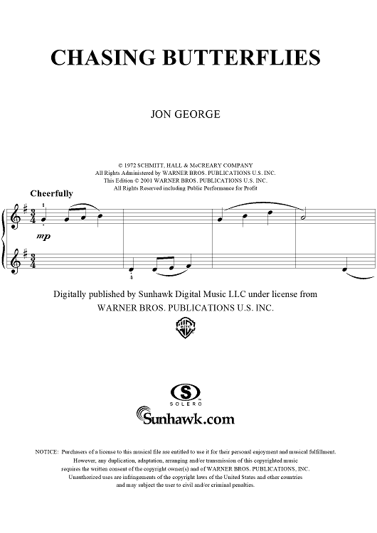 Digital Sheet Music for Chasing Butterflies by Jon George scored for Piano Solo; id:285924