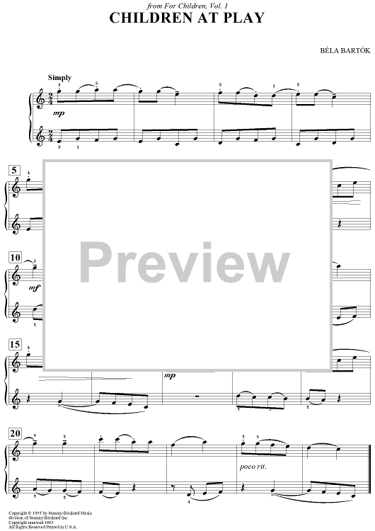 "Children At Play - from For Children, Vol. 1" Sheet Music by Bela Bartok