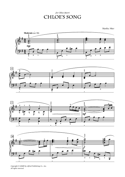 Digital Sheet Music for Chloe's Song by Martha Mier scored for Piano; id:462688
