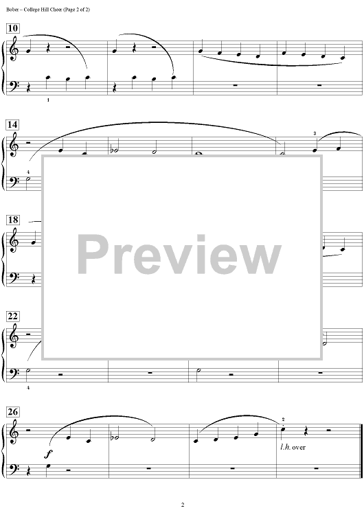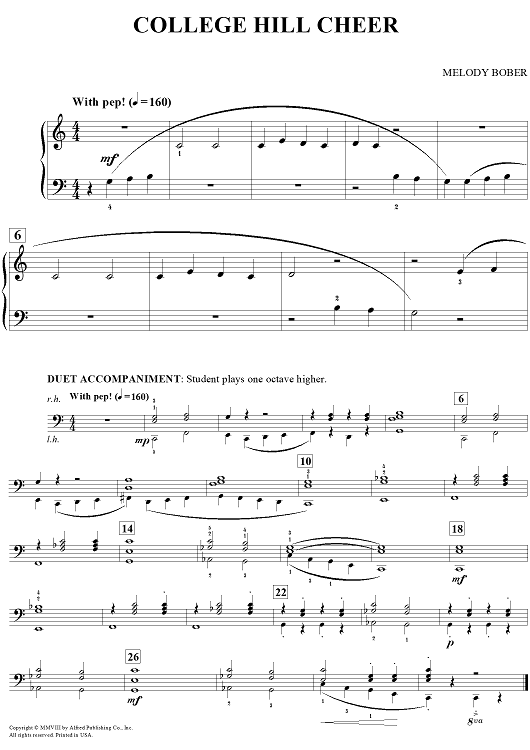 Digital Sheet Music for College Hill Cheer by Melody Bober scored for Piano; id:457586